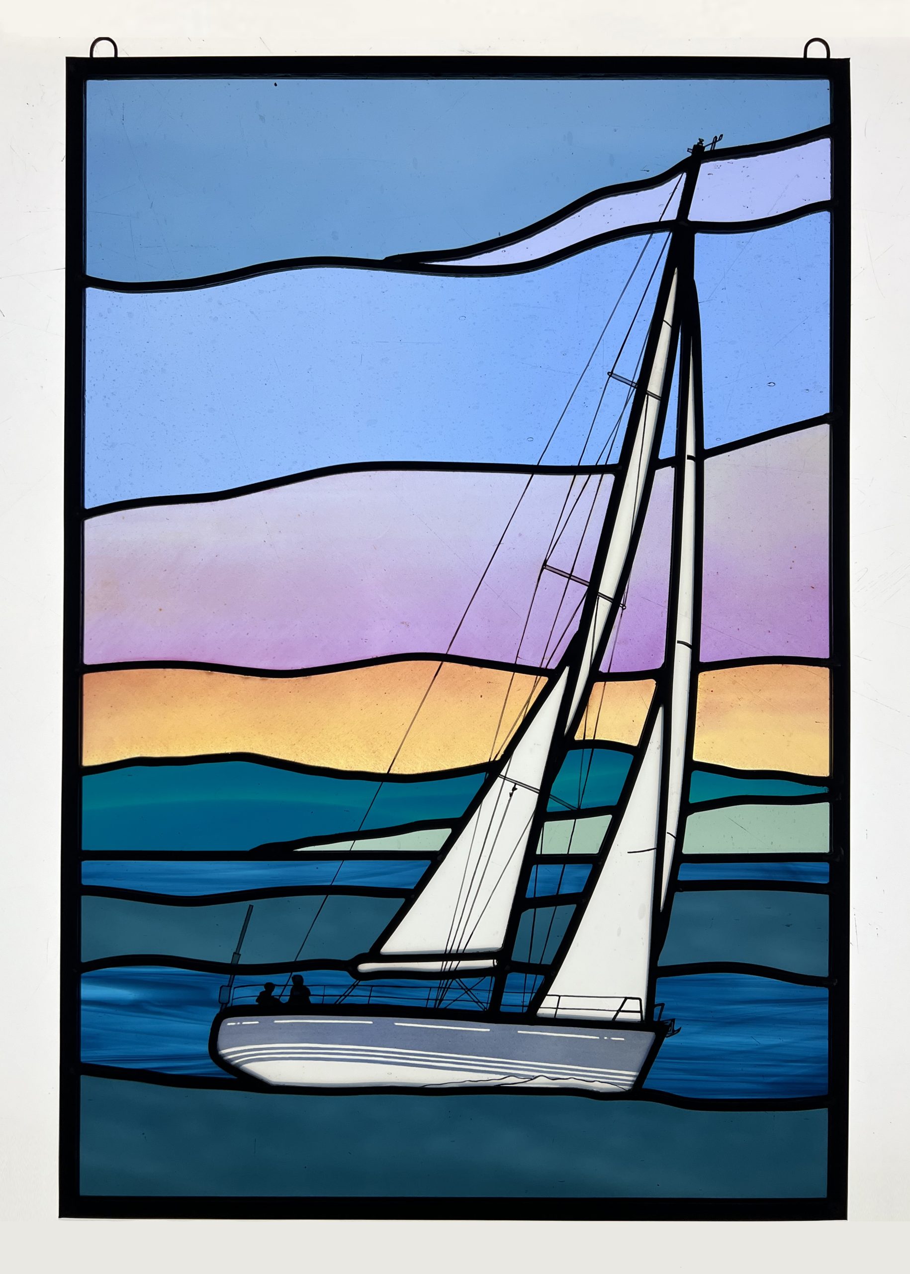 As we were planning a refurbishment of our little apartment I came up with the idea of knocking a whole in an internal wall and having stained glass framed to fill it so the rooms each side would benefit. So I set about trying to find a stained glass artist whose style I liked. I found Dave online and really liked his work. He was very responsive and upfront about the timing due to his current commissions, but that fitted into our plans. I designed an outline and Dave worked with me to realise it into a stained glass version of my idea, and didn’t get impatient with my various small tweaks to the initial design. Covid restrictions meant we had to choose glass over Zoom, but then due to delays on my side, I was able to reconfirm our choices in person. Dave kept me updated with progress on the glass cutting and construction with regular photos. It was great to see the piece come together and then amazing to see it in person when we went to collect it. It is now in place and looks stunning from both sides and is the focal point for both rooms. Dave is so talented and delightful to work with. I highly recommend him for any stained glass project you may have.